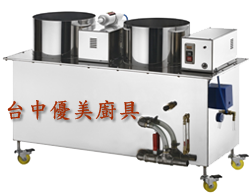 使用靜電除油煙機,它會把油漬收集在底盤或用導管引到桶子裡,但須搭配一台排氣風車馬達,現今市面上技術蠻成熟的,不然像傳統式的作法用一個水桶或排到水溝,等一下環保局就來開罰單了